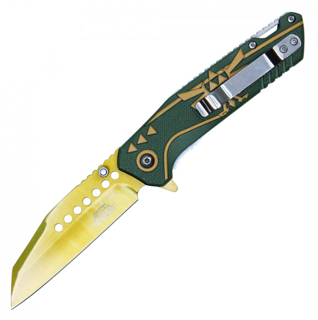 🗡️ Hero's Blade: 7-3/4" Assisted Open Pocket Knife | Gold/Green Fandom Edition
